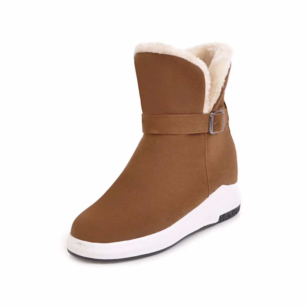 Goede Kopen Vrouwen Winter Warm Pluche Snowboots 2017 Dame Mode Bontvoering dikke Hak Casual Solid Zwart Bruin Beige Laarzen Big Size 34 43 Goedkoop