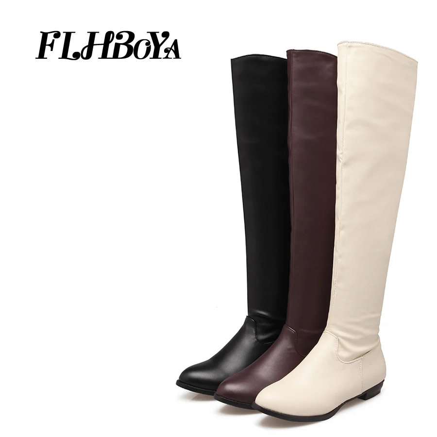 Over De Knie Laarzen Dames Herfst Winter Zwart Beige Rits Lange Boot