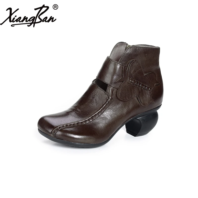 Kopen Goedkoop Xiangban 2018 Originele Ontwerp Vrouwen Schoenen Enkellaarsjes Lederen Ronde Tenen Koe Lederen Vrouwen Laarzen Zwarte Koffie Prijs