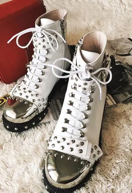 Goede Kopen LoneLinecc Nieuwe Mode Zwart Wit Lederen Mid Kalf Schoenen