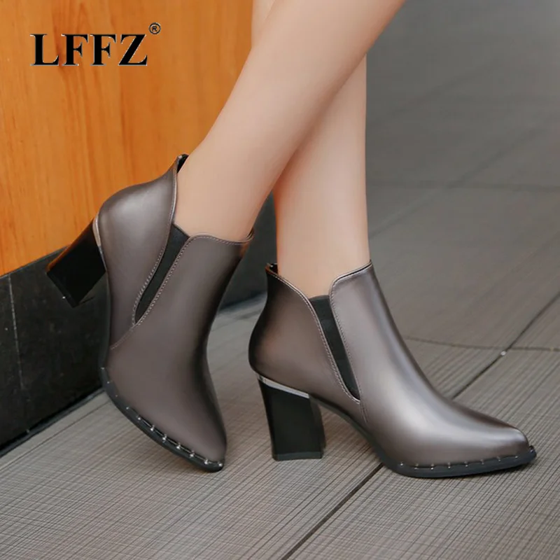 Beste Kopen Lzzf 2018 Winter Mode Lederen Zwarte Waterdichte Vrouwen Ankel Laarzen Casual Dames Chelsea Laarzen Hoge Hak Rode Schoenen Vrouw Botas Goedkoop
