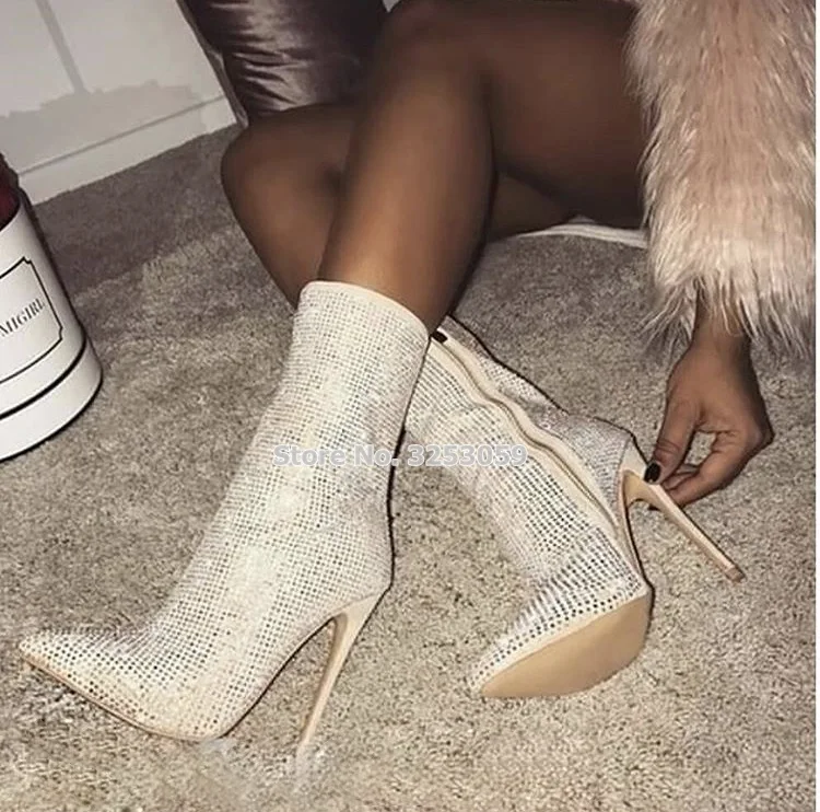 Mid kalf Laarzen Rits Stiletto Hakken Trouwschoenen Fonkelende Jurk