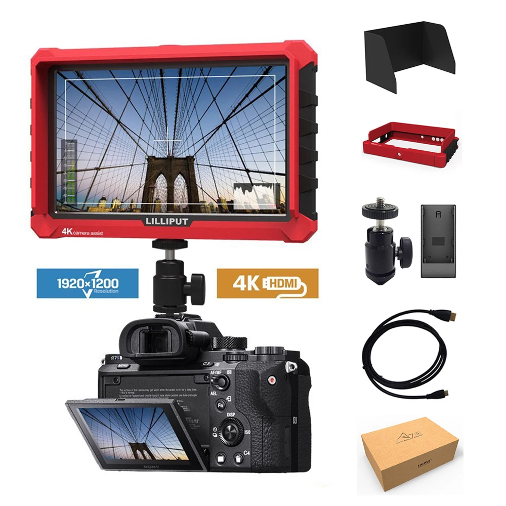Kopen Goedkoop Als Atomos Lilliput A7S 7 inch 4 k HD 1920x1200 HDMI camera Video Field Monitor voor Canon Nikon ZHIYUN Crane DJI ronin s gimbal Prijs