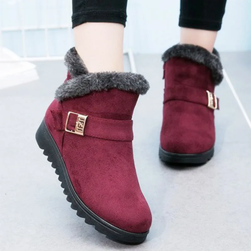 Goede Kopen Vrouwen Snowboots Winter Enkellaars Voor Vrouwen Schoenen Zwart Rood Vrouwen Laarzen 2018 Fashion Warm Plus Size Schoenen Goedkoop