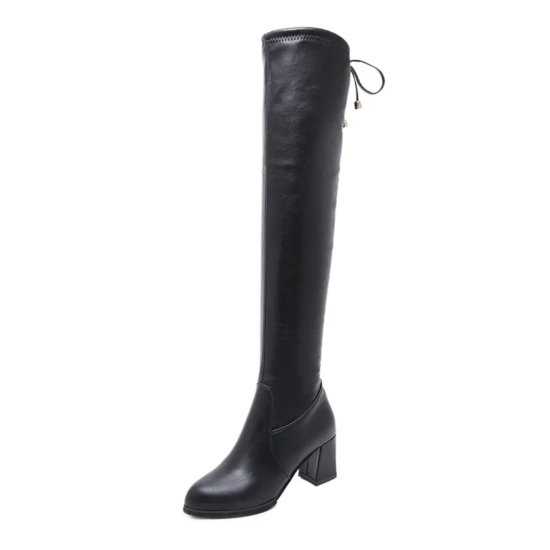 Beste Kopen 2018 winter nieuwe verdikking buitenlandse handel ronde kop dik met fluwelen over de knie stretch vrouwelijke laarzen zwart ljj 1129 Goedkoop