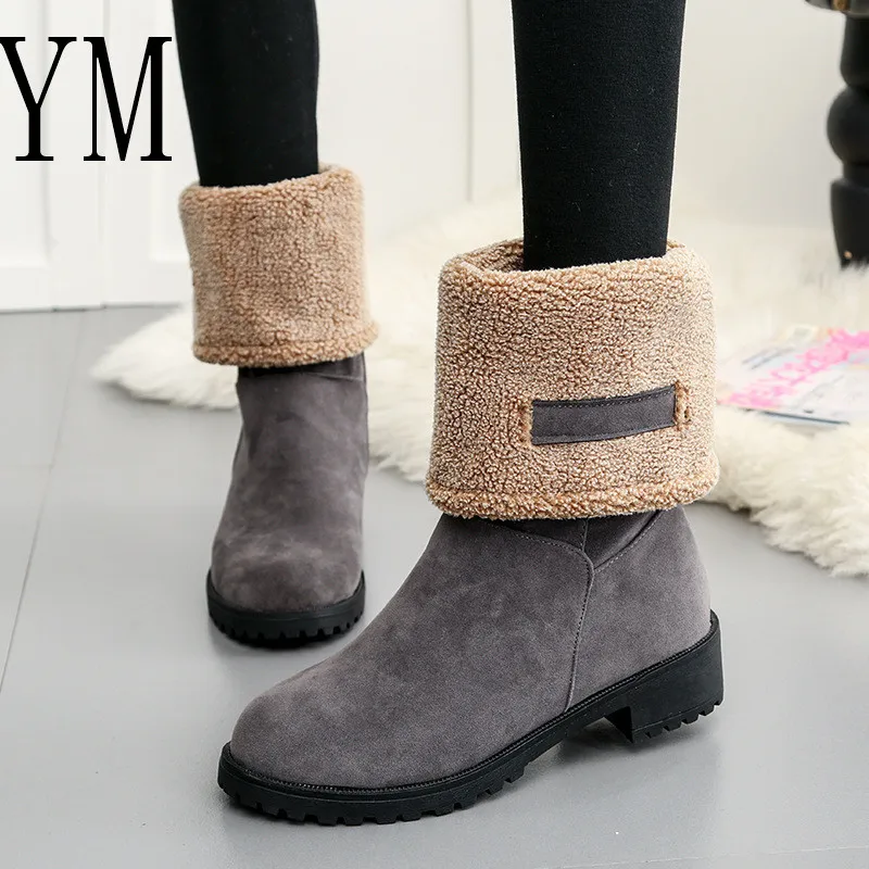 Vrouwelijke Winter Schoenen Vrouw Bont Warme Snowboots Mode Vierkante