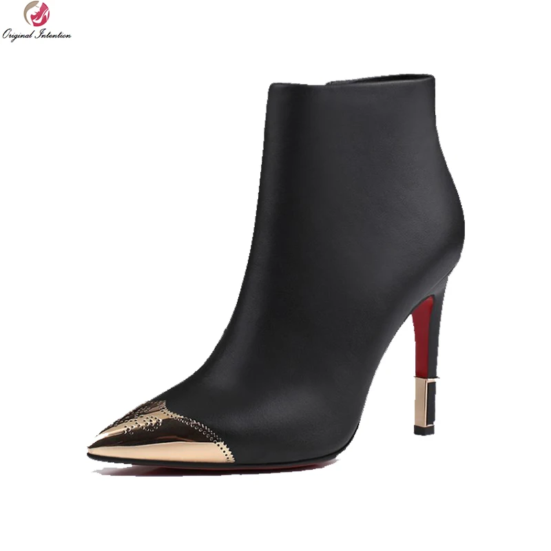 Kopen Goedkoop Originele Bedoeling Hoogwaardige Vrouwen Enkellaarsjes Koe Lederen Wees Teen Dunne Hakken Laarzen Zwart Naakt Schoenen Vrouw AMERIKAANSE Maat 3 9.5 Prijs