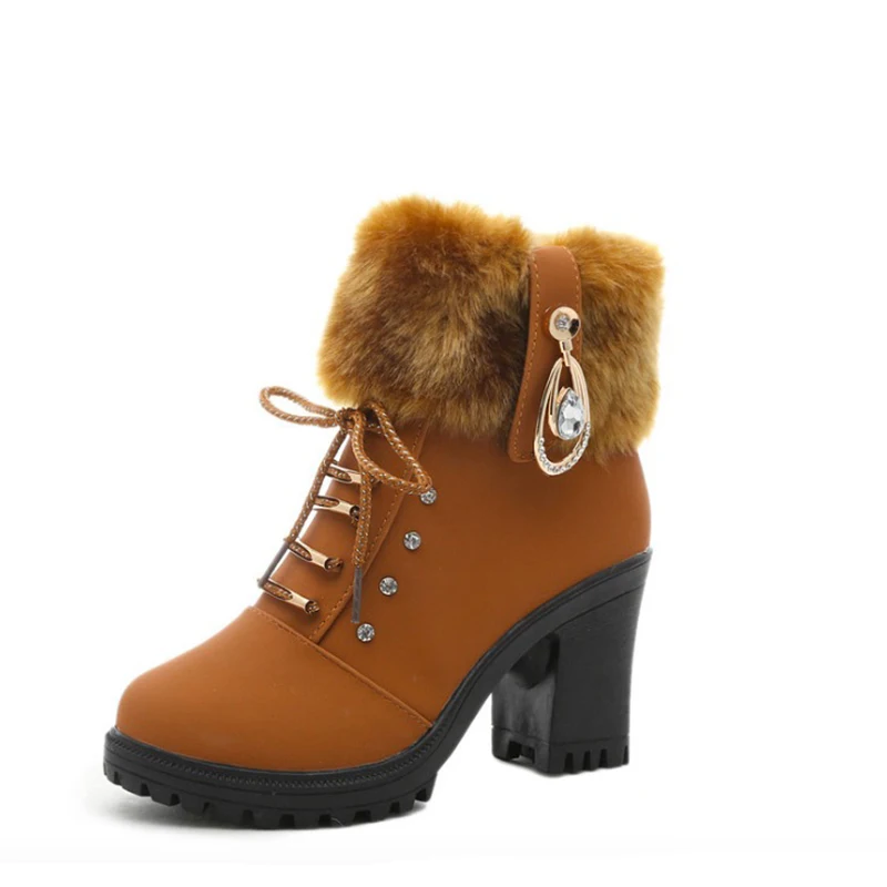 Beste Kopen Vrouwen Laarzen Winter Mode Kudde Lederen Vrouwen Snowboots Crystal lace Up Warm Pluche Vrouwen Enkellaars Zwart Martin laarzen Goedkoop