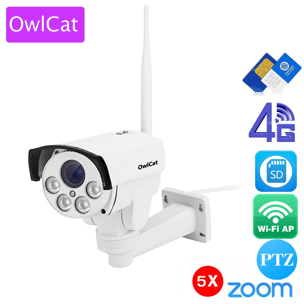 Goede Kopen OwlCat HD 960 p 1080 p 4g sim kaart IP Camera Wifi Outdoor Bullet PTZ 5X Zoom Pan Tilt video Camera Draadloze Hotspot AP Motion Goedkoop