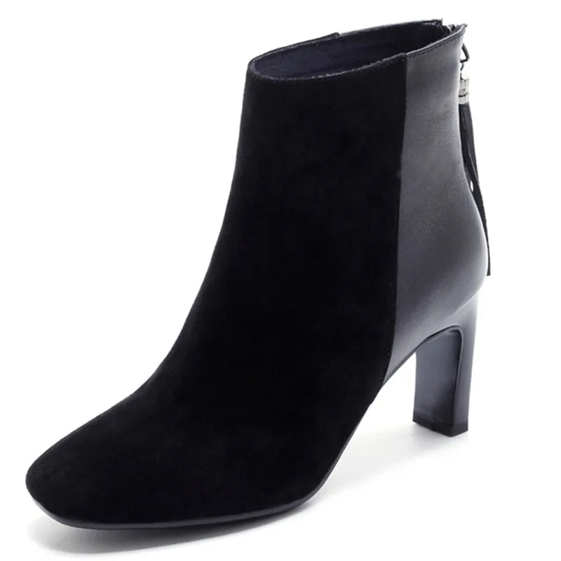 Beste Kopen LOVEXSS Vrouw Herfst Winter Fringe Enkellaarsjes Mode Plus Size 34 39 Martin Laarzen Zwarte Hoge Hakken Schoenen 2018 Goedkoop
