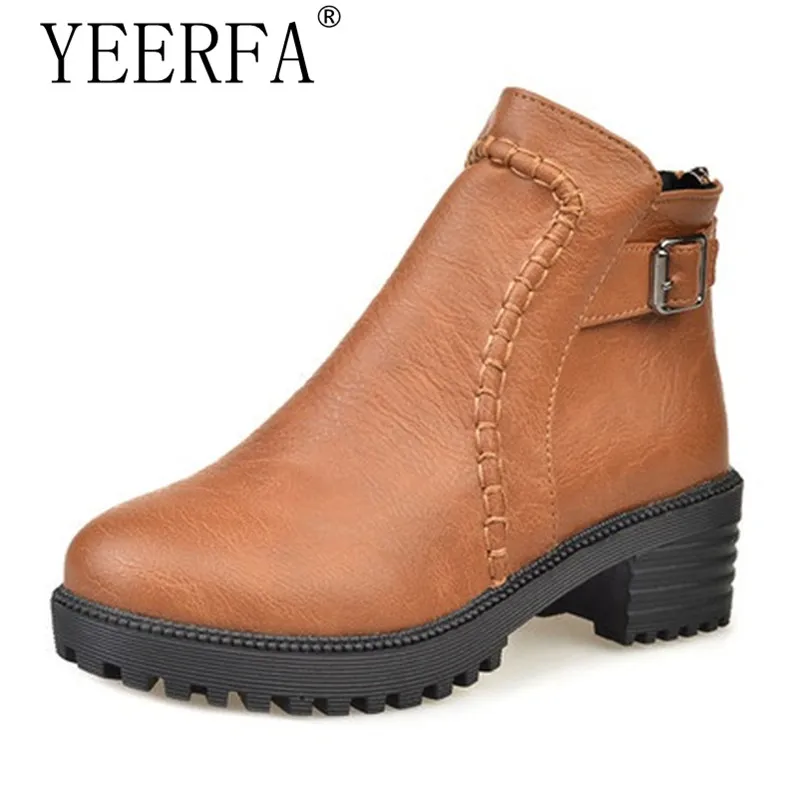 Kopen Goedkoop Size 35 43 Herfst Winter Top Lederen Martin Laarzen Vrouwen Zwart Rits Gesp Enkellaarsjes Vrouwelijke Vierkante Lage Hak laarzen schoenen Prijs